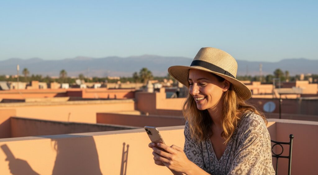 Imaginons une seconde : vous venez d’atterrir à l’aéroport de Marrakech. Vos valises sont récupérées, le soleil marocain vous réchauffe le visage, et vous êtes impatient de commencer votre séjour. La première chose dont vous avez besoin, après un long voyage, est de prévenir vos proches, de consulter l’itinéraire vers votre riad ou de partager un premier instantané de votre arrivée.