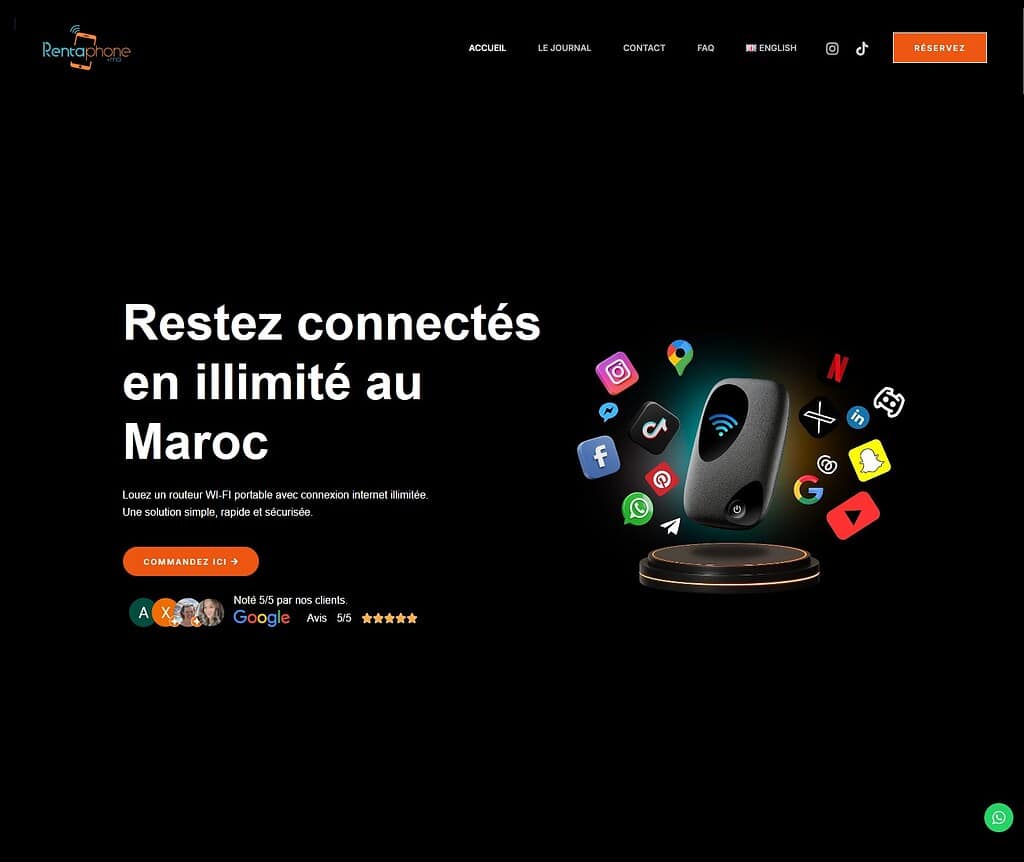 RentAPhone est une entreprise spécialisée dans la location de routeurs WiFi pour les voyageurs au Maroc, proposant des services complets incluant la location de routeurs WiFi avec connexion internet illimitée.