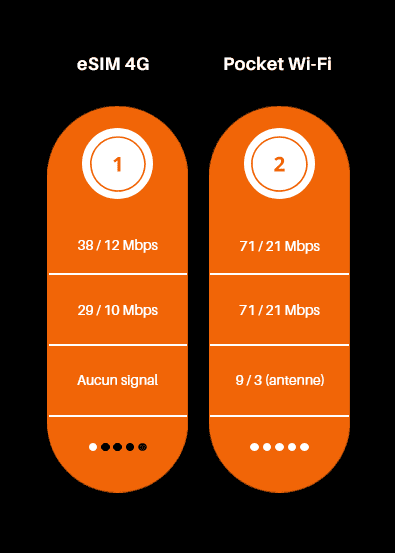 Sur les zones touristiques, le pocket Wi-Fi est souvent 2x plus rapide qu’une eSIM connectée à l’étranger.